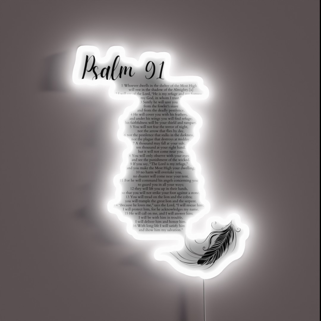 **Illuminate Your Faith with the Psalm 91 Bible Verses 91:1-16 Feather RGB Neon Sign**