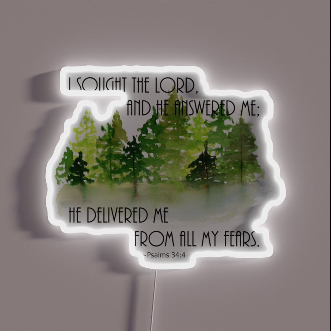 **Psalms 34:4 Watercolor Forest and Lake RGB Neon Sign**