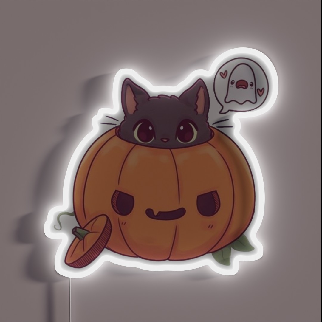 Pumpkin Kitty Original Gray RGB Neon Sign