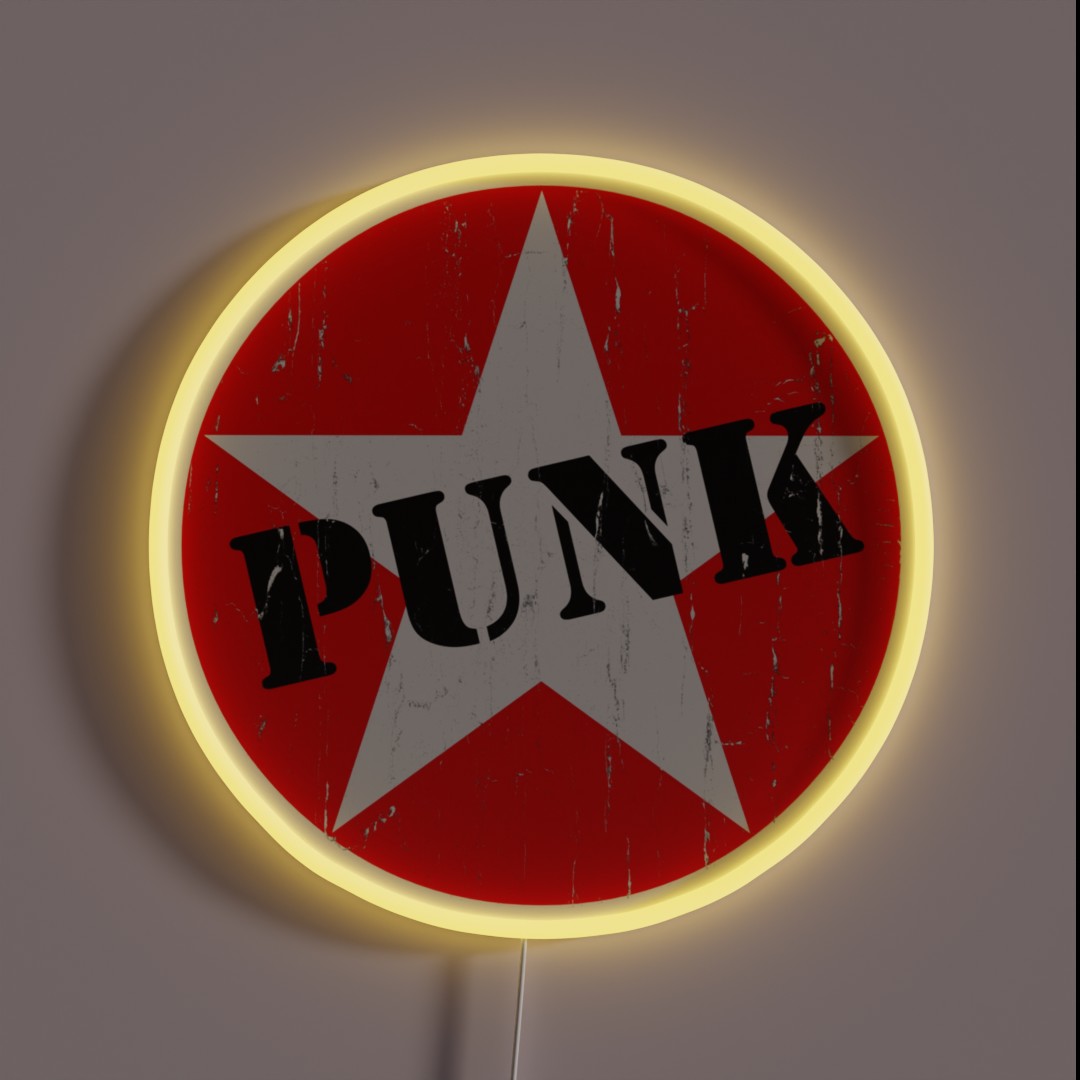 PUNK Road Worn Distressed Grunge Star Logo RGB Neon Sign
