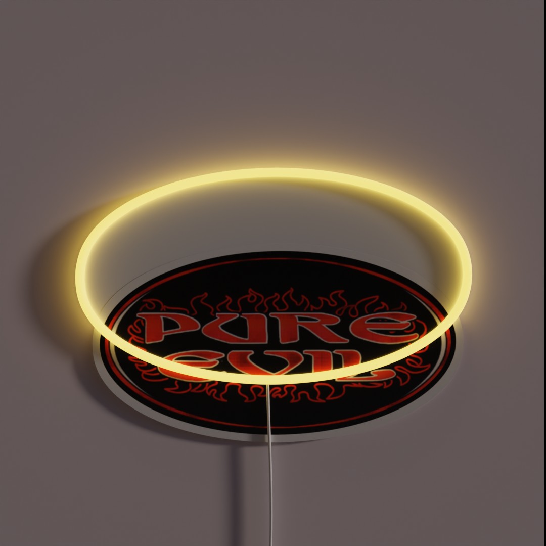 Add an eerie ambiance to any room with the Pure Evill RGB Neon Sign, a bold and ominous statement piece featuring vibrant, hand-crafted neon lights.
