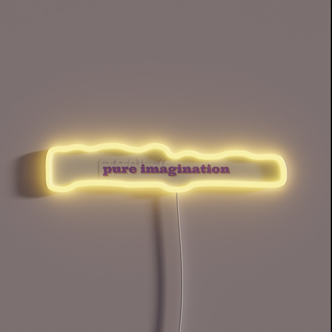Bring your wildest dreams to life with our vibrant Pure Imagination RGB neon sign, inspired by Willy Wonka’s iconic phrase and perfect for fans of fantasy, creativity, and nostalgia.