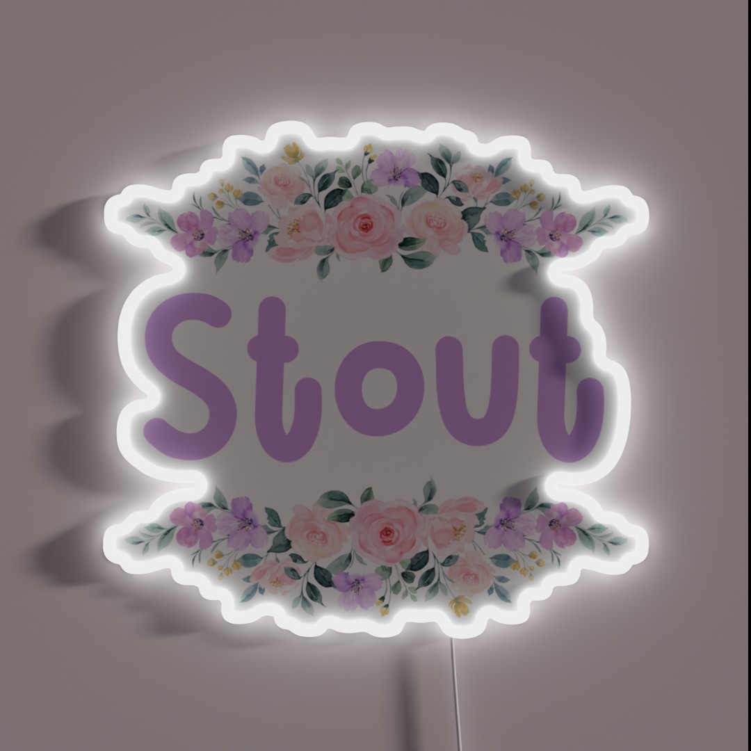 Purple Flower Stout Name Label Black RGB Neon Sign