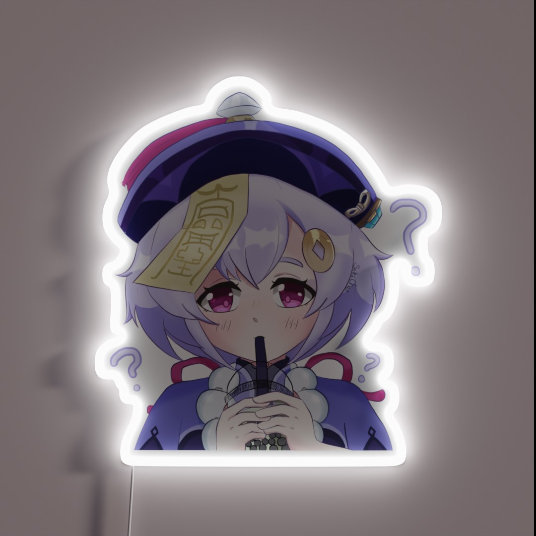 Brighten up your space with this unique Qiqi drinking boba themed RGB neon sign, featuring vibrant colors and energetic vibes perfect for fans of Genshin Impact.
