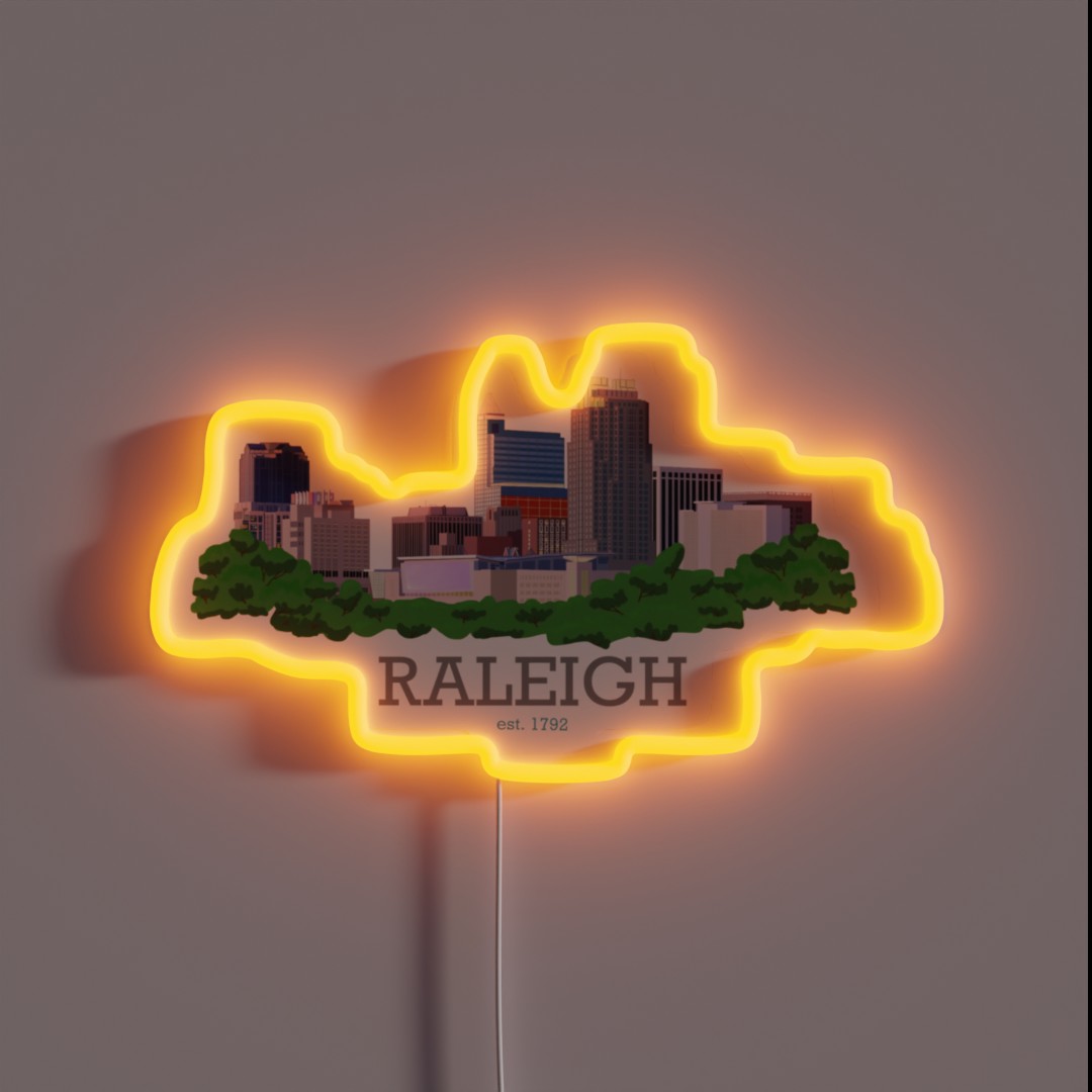 Raleigh City Skyline RGB Neon Sign – A vibrant and eye-catching LED light display featuring the iconic skyline of Raleigh, NC in radiant color.