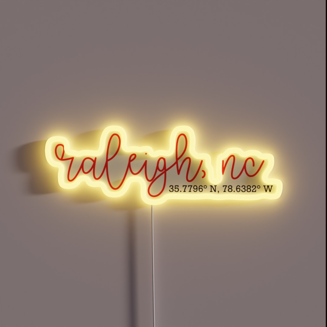 Add a touch of modern elegance to any space with our Raleigh Coordinates RGB Neon Sign, featuring customizable neon lighting that can be programmed to display your name, initials, or coordinates in vibrant colors.