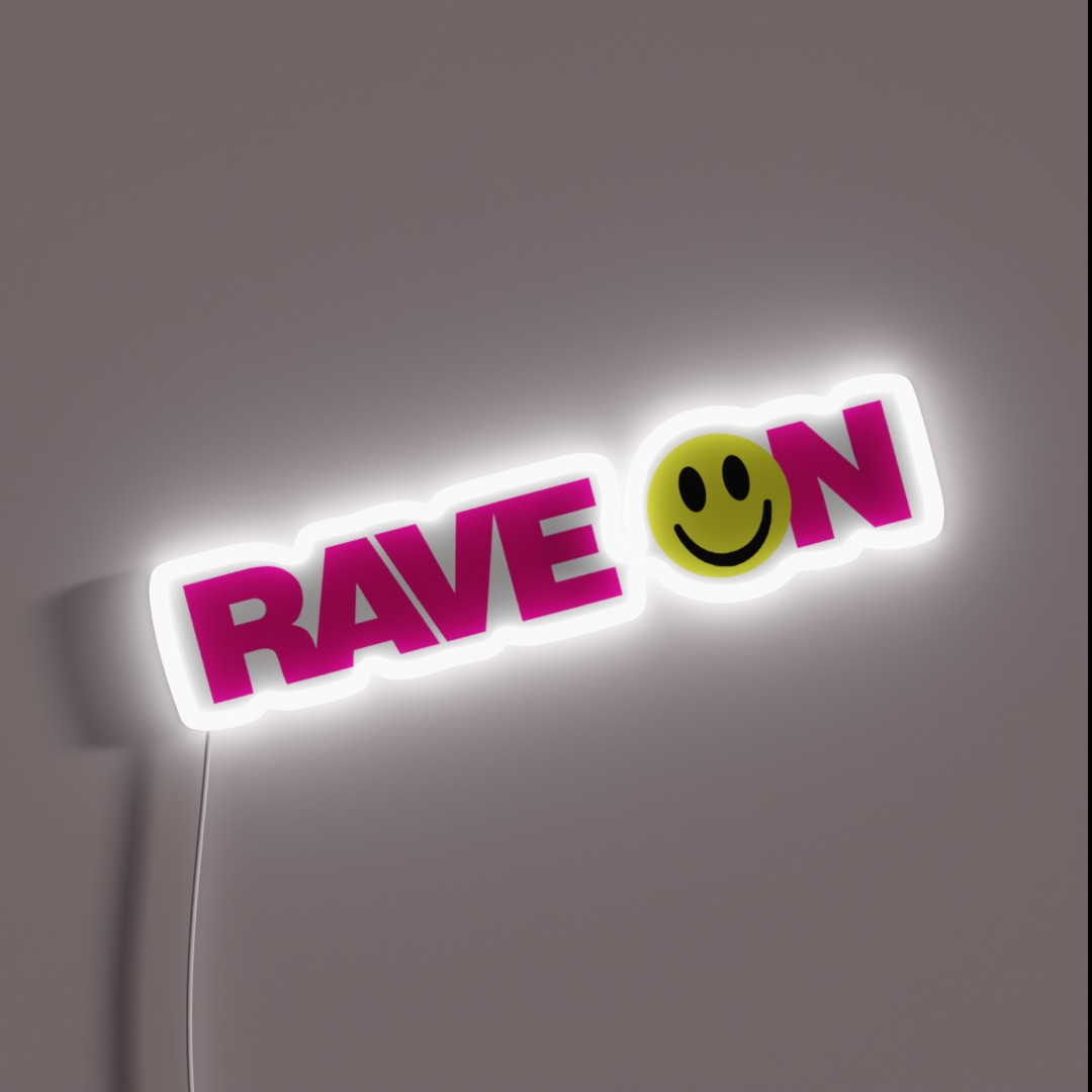 Add a vibrant touch to your home or studio with the Rave On DJ RGB neon sign, perfect for music enthusiasts and lighting designers seeking a unique decorative piece.