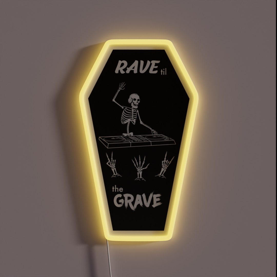 Rave Til The Grave Skele Dj RGB Neon Sign