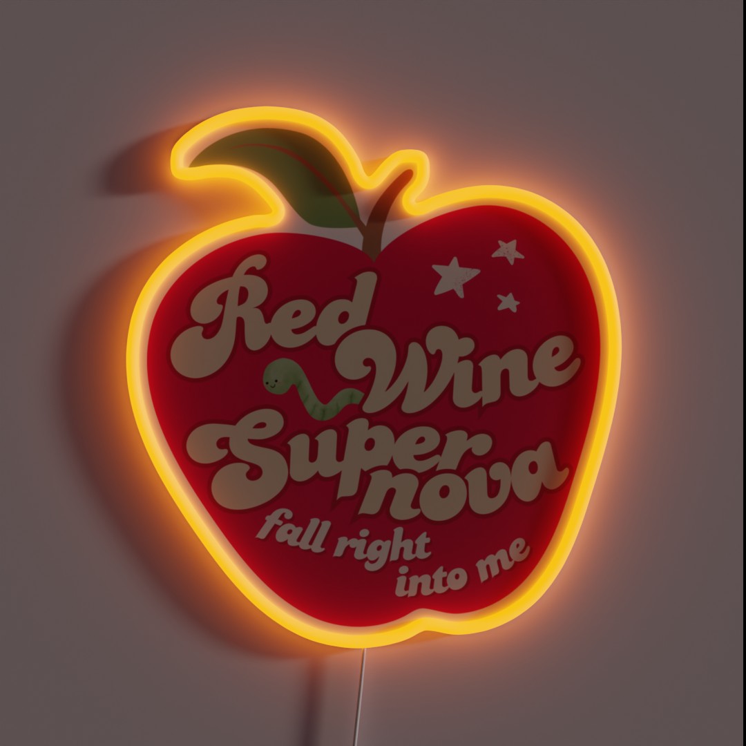 Introducing the Red Wine Supernova Apple RGB Neon Sign, a vibrant and eye-catching decorative piece that adds a touch of elegance to any room. This stunning sign features a mesmerizing design that resembles a burst of color in the night sky, perfect for wine lovers and art enthusiasts alike.