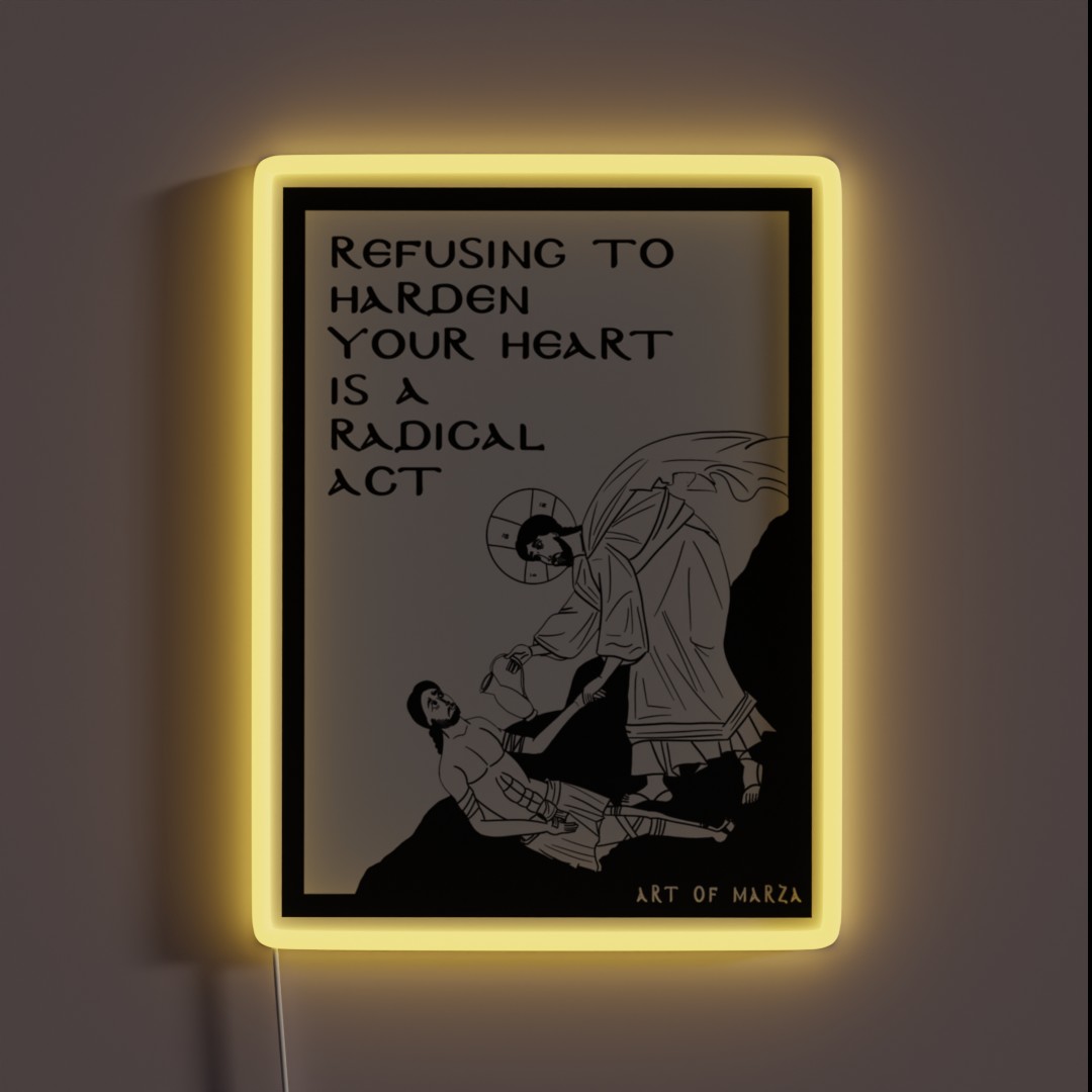 Bring home the compassionate spirit with our ‘Refusing to Harden Your Heart’ Good Samaritan RGB neon sign. A heartfelt reminder of kindness and generosity, perfect for any room or office.