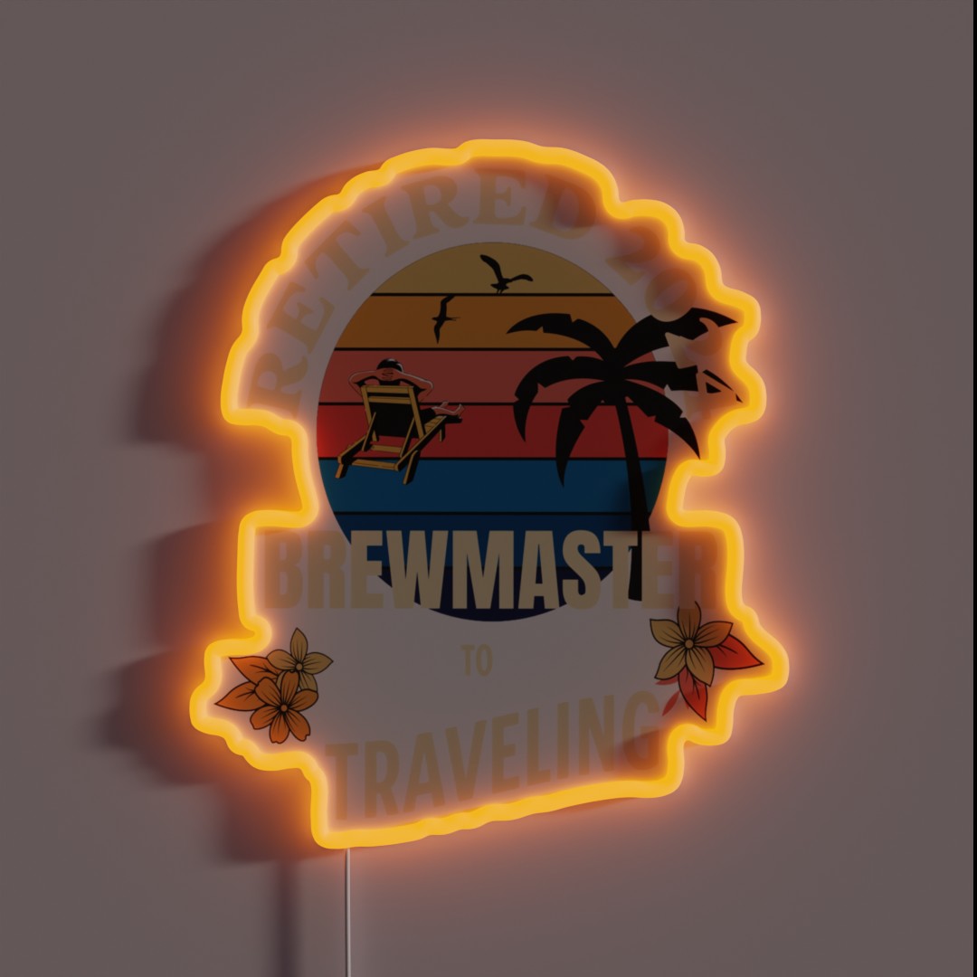**Retired Brewmaster 2024 Tropical Sunset Retirement Vibes Design RGB Neon Sign**