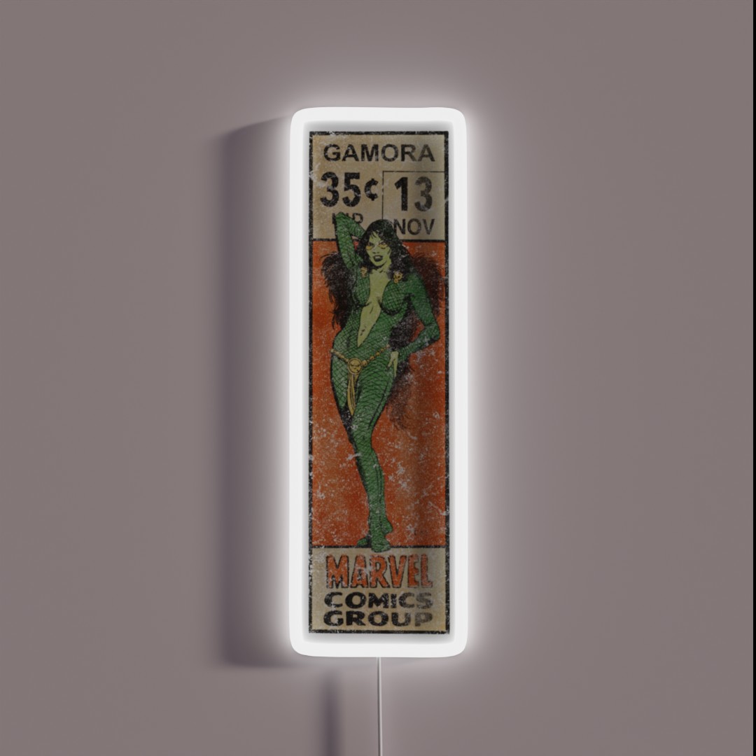 Add a touch of cosmic charm to your gaming setup or home decor with the Retro Corner Box Gamora RGB neon sign, featuring vibrant colors and intricate design inspired by Marvel’s iconic superheroine.
