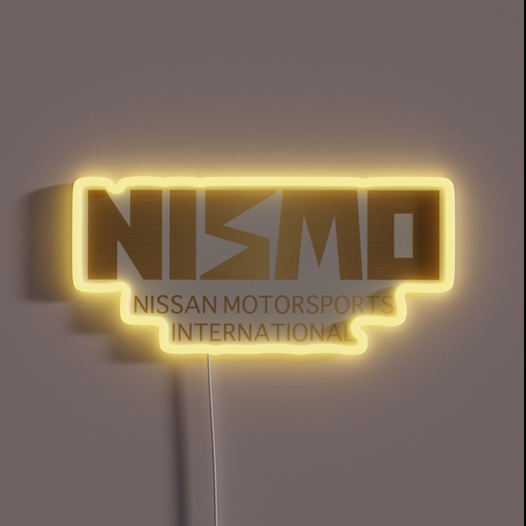 Add a touch of motorsports style to your space with this authentic Retro Gold and Black Nismo Nissan Motorsport Logo RGB neon sign, featuring vibrant colors and vintage flair.
