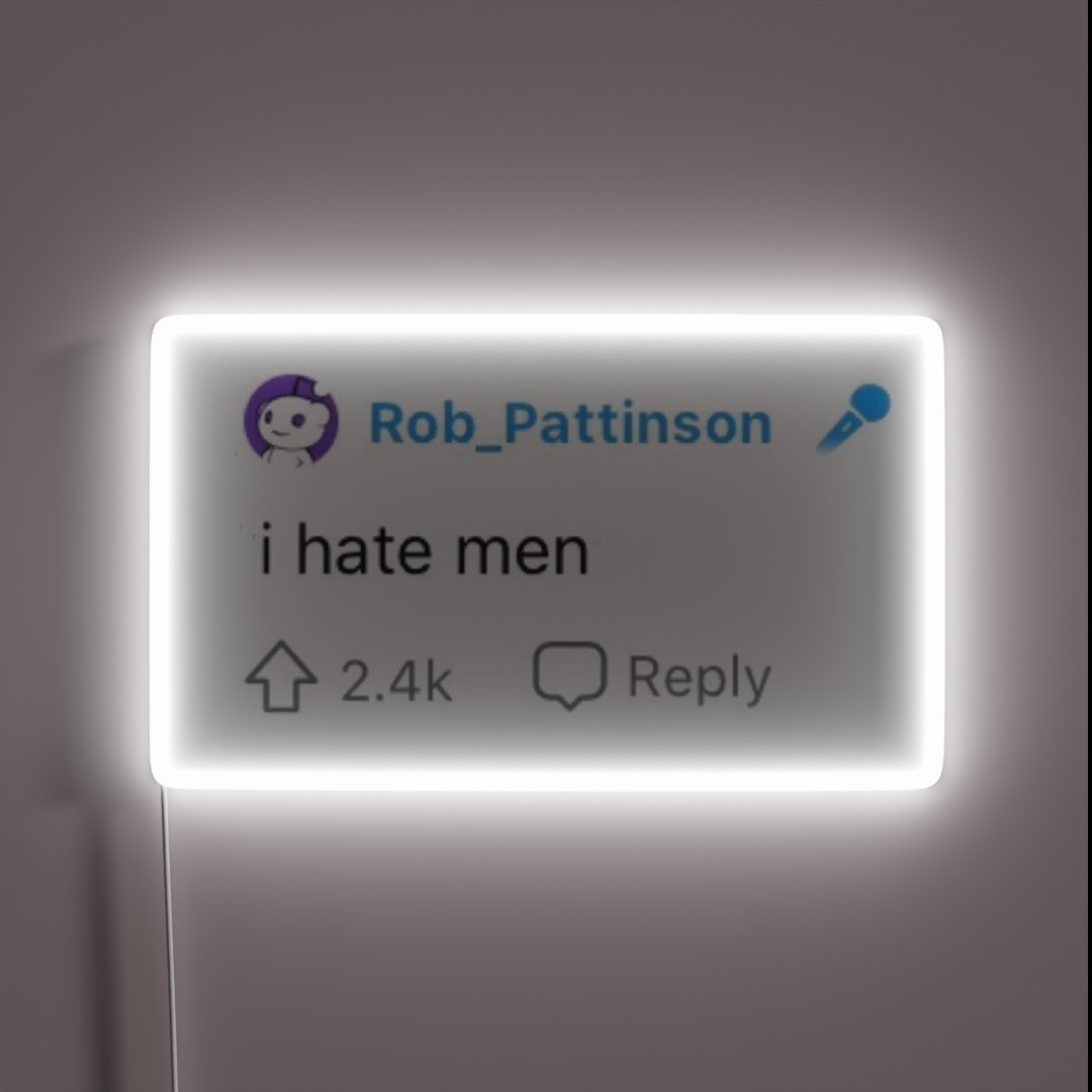 Make a statement in your home or office with this vibrant and modern neon sign featuring the iconic figure of Robert Pattinson from the popular internet forum, Reddit. This stunning display combines cutting-edge LED technology with classic neon design to create a truly unique piece.