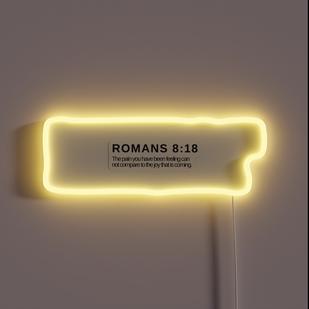 Illuminate your faith with this vibrant Romans 8:18 LED neon sign, featuring radiant RGB colors that emanate hope and promise in a sleek, modern design.