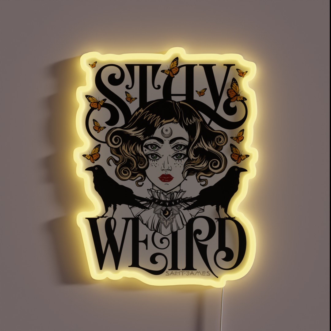 Rose And The Ravens Stay Weird Colour Version RGB Neon Sign