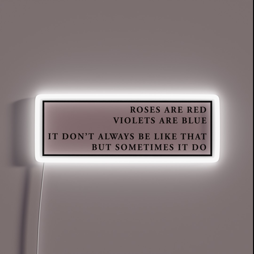 Roses are red, violets are blue – defy poetic norms with this vibrant RGB neon sign, where classic charm meets modern twist in a unique, eye-catching display.