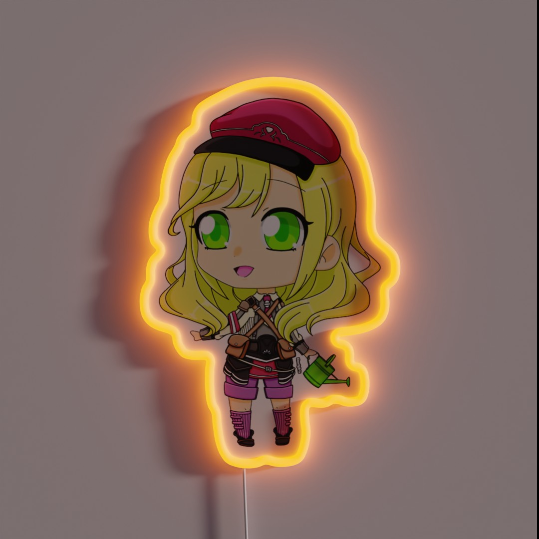Bring vibrant RPG flair to your space with this custom RGB neon sign featuring the female protagonist from Rune Factory 5, perfect for fans of the game and gamers alike.