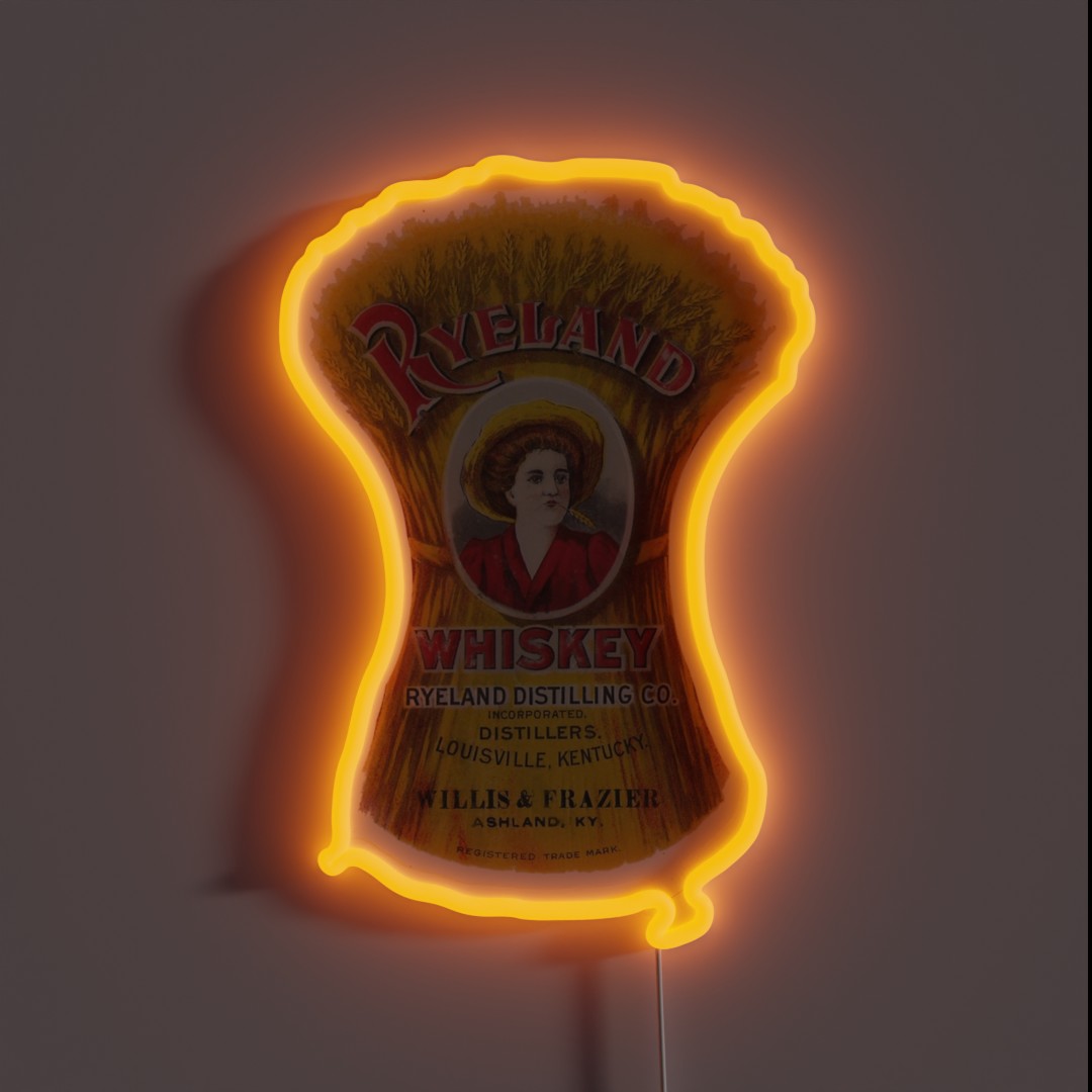 Illuminate your space with the Ryeland Distilling Co’s vibrant RGB neon sign, featuring their iconic brand and Louisville, KY roots. Perfect for whiskey enthusiasts and fans of local spirits.