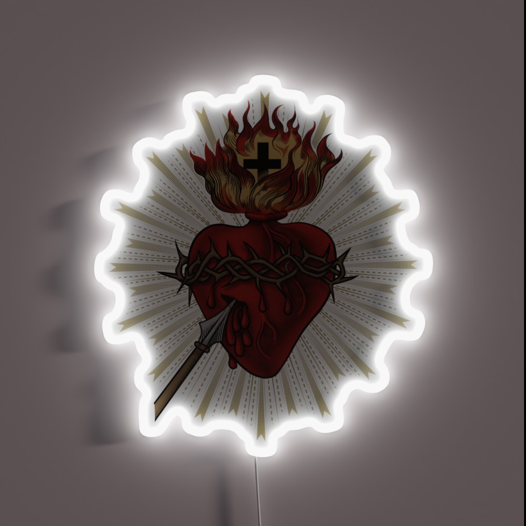 Illuminate your devotion with this vibrant RGB neon sign featuring the Sacred Heart of Jesus Christ, a beautiful and unique addition to any faith-based decor.
