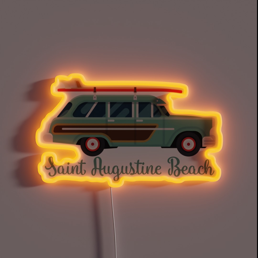 Saint Augustine Beach Florida Retro Surf Wagon RGB Neon Sign