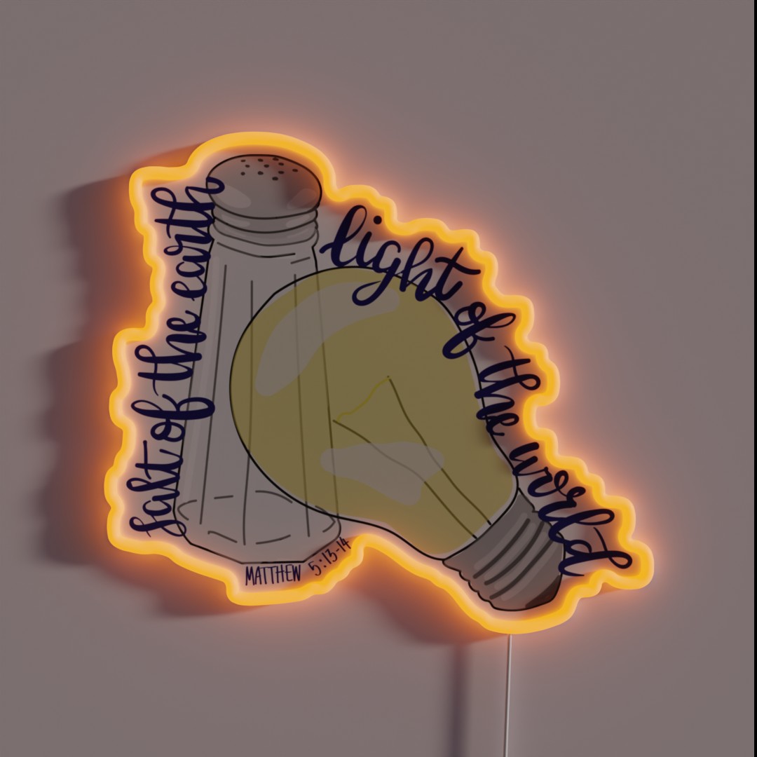 Illuminate your space with faith and inspiration from this unique Salt and Light Bible verse neon sign, featuring vibrant RGB colors and a powerful message of Christian scripture.