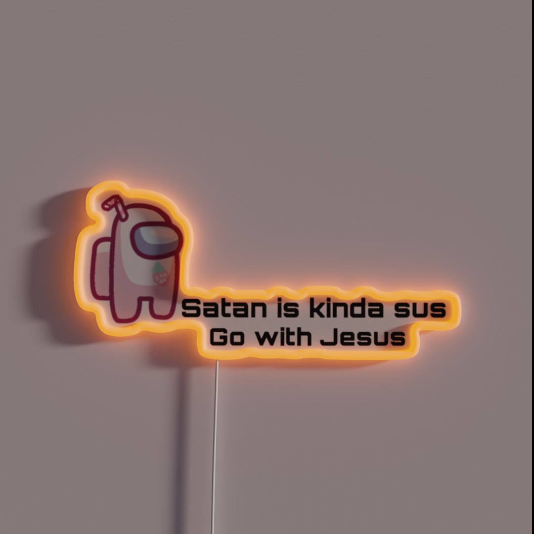 Make a statement in your home or office with the “Satan is Sus” RGB neon sign. This eye-catching display is designed for anyone who wants to express their unique personality and add a touch of darkness to their space.