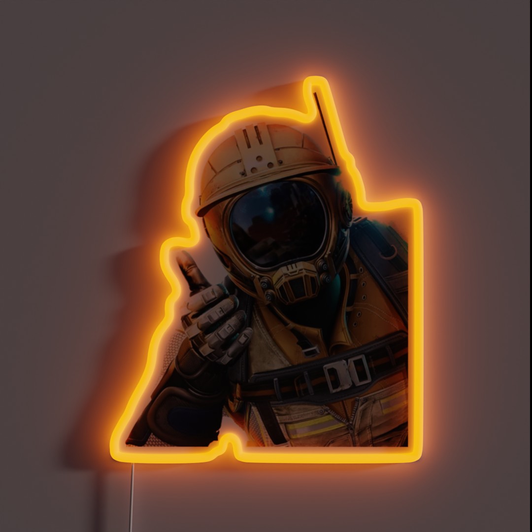 Brighten up your workspace with the Satisfactory Engineer RGB neon sign, a vibrant and eye-catching addition to any gaming or office setup.