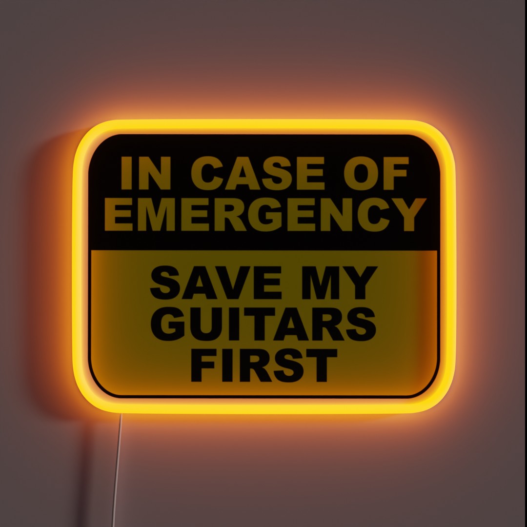 Add a touch of rockstar flair to your music space with our ‘Save My Guitars First’ RGB neon sign, featuring a humorous twist on priorities that any guitar enthusiast will love.