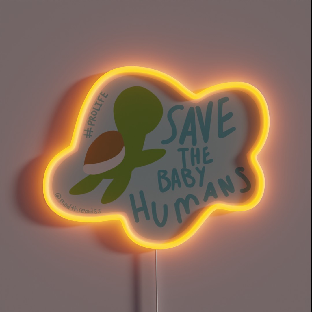 Make a statement about the importance of preserving our planet’s resources and protecting future generations. Add this thought-provoking Save the Baby Humans RGB neon sign to your space today.