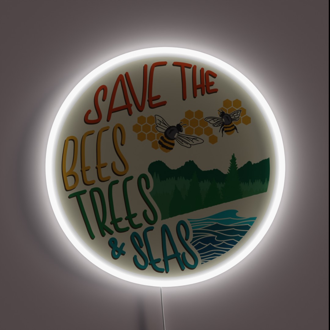 **Save The Bees Trees and Seas Retro RGB Neon Sign**