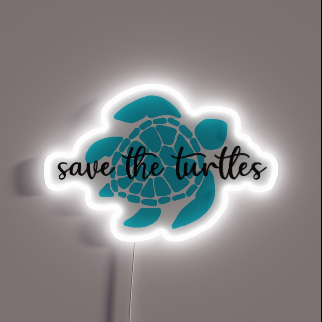 Brighten up your space with our vibrant Save The Turtles RGB neon sign, perfect for ocean lovers and sustainability enthusiasts alike, showcasing a colorful turtle design that shines bright with LED technology.