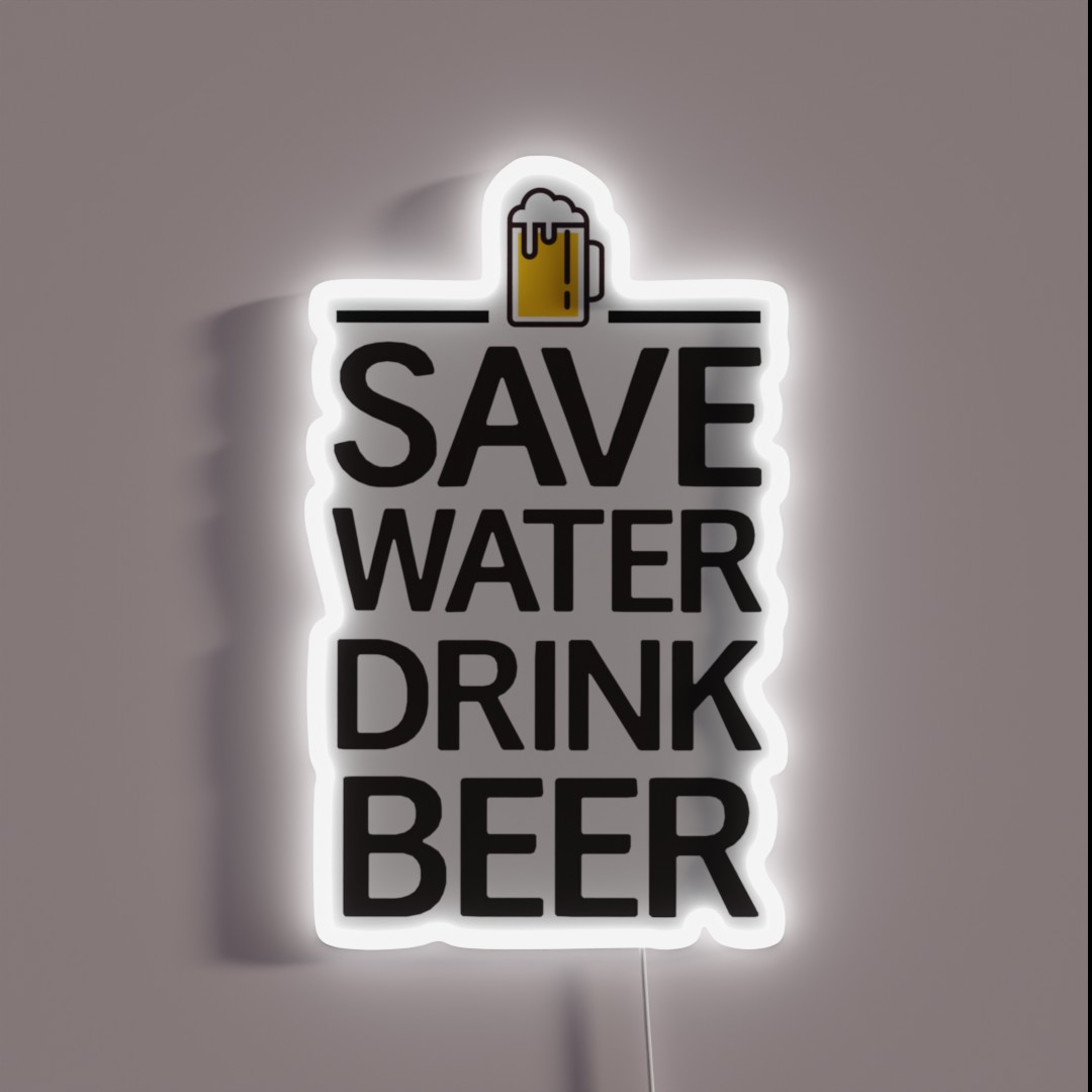 RGB Neon Sign – ‘Save Water, Drink Beer’ Humorous Bar Sign for Home Decor, Perfect Gift for Beer Lovers and Environmentalists Alike.