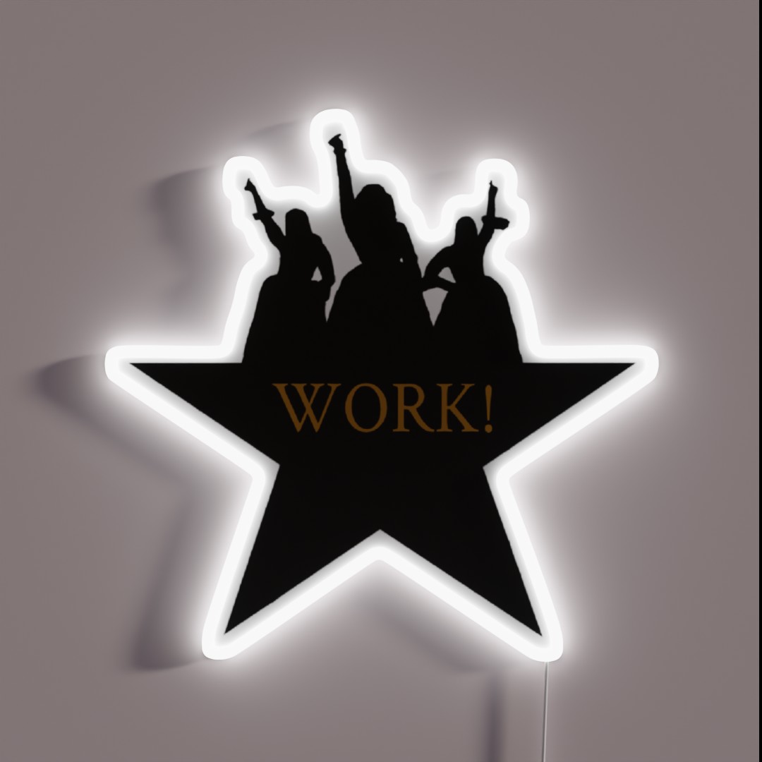 Add a touch of Revolutionary spirit to your space with our Schuyler Sisters Work RGB neon sign, featuring the iconic lyrics from Hamilton in vibrant, glowing letters that light up your home or office.