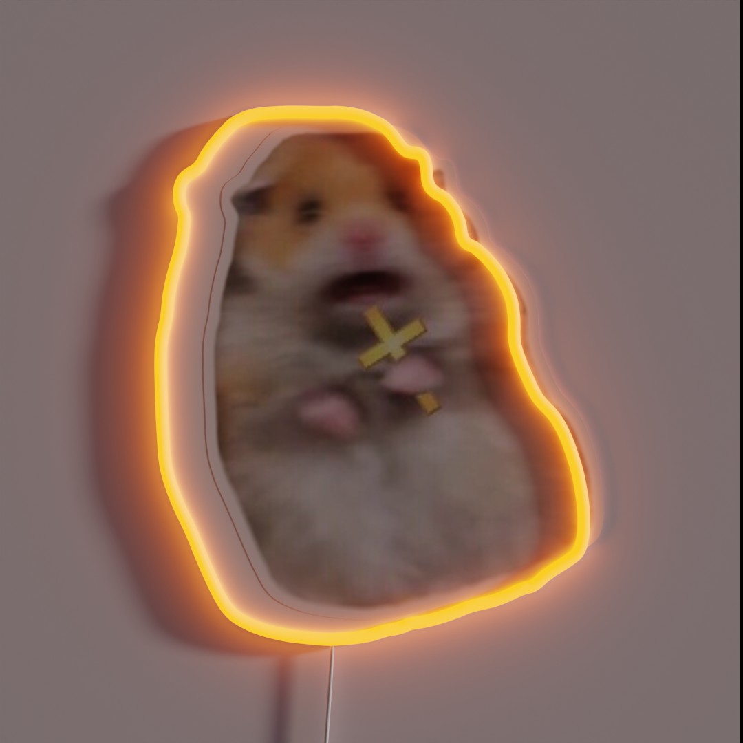 **Screaming Hamster with a Cross RGB Neon Sign**