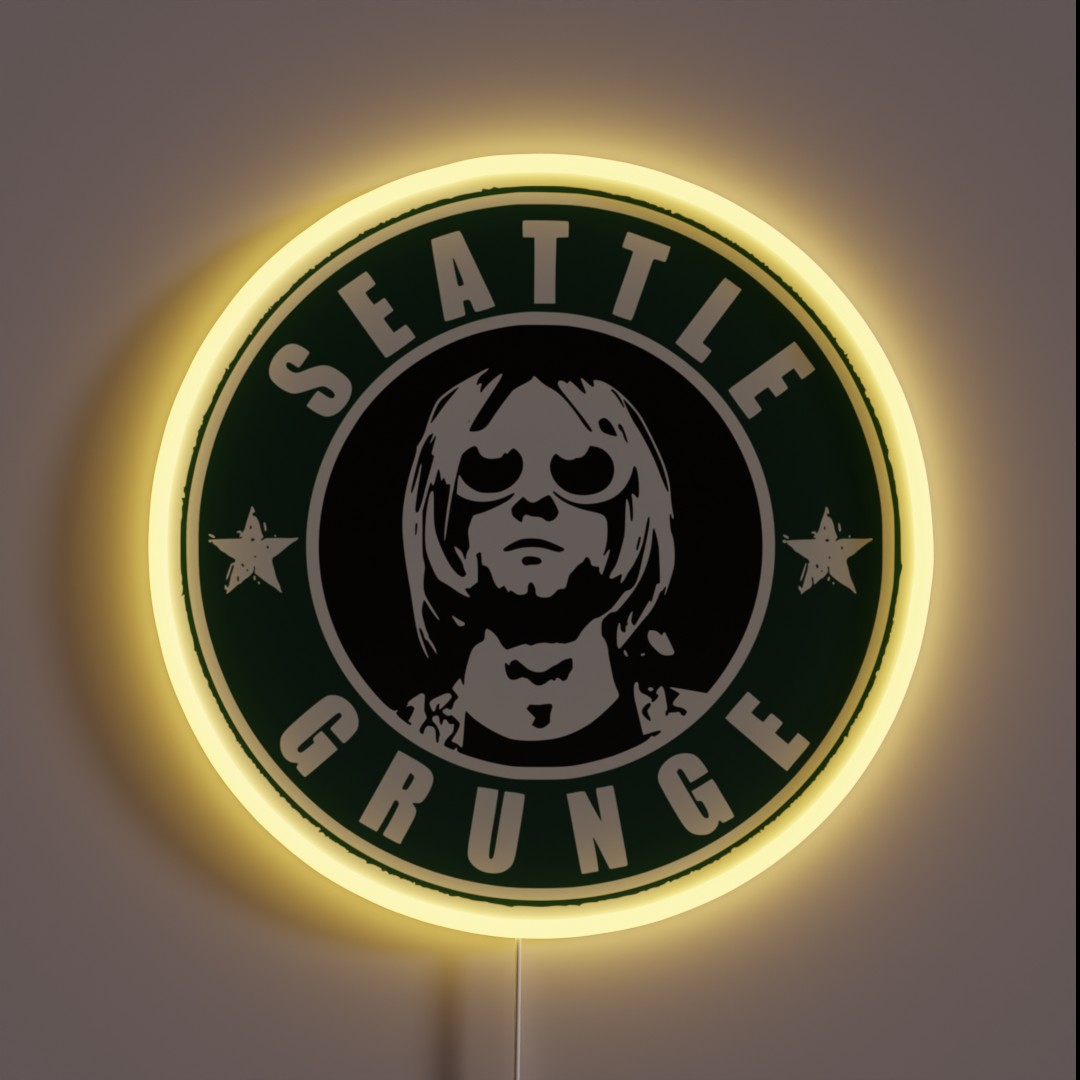 Add a touch of 90s nostalgia to your space with this vibrant Seattle Grunge-inspired RGB neon sign, paying homage to iconic rock bands and the Emerald City’s rich music history.