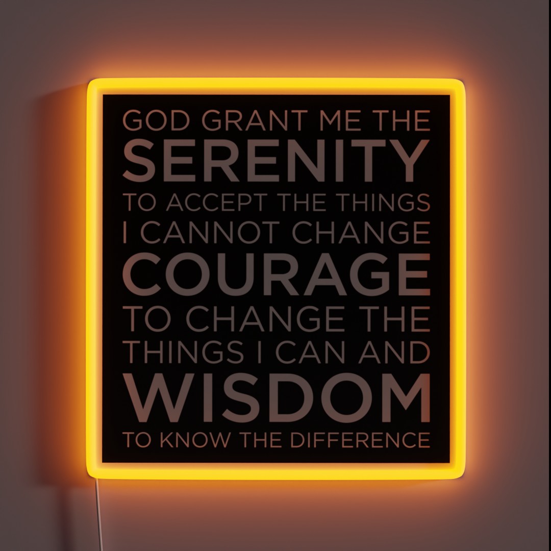 Find solace and inspiration with this Serenity Prayer black and white print that doubles as a vibrant RGB neon sign. Perfect for those in recovery from addiction, this unique art piece serves as a reminder of the struggles and triumphs of sobriety.