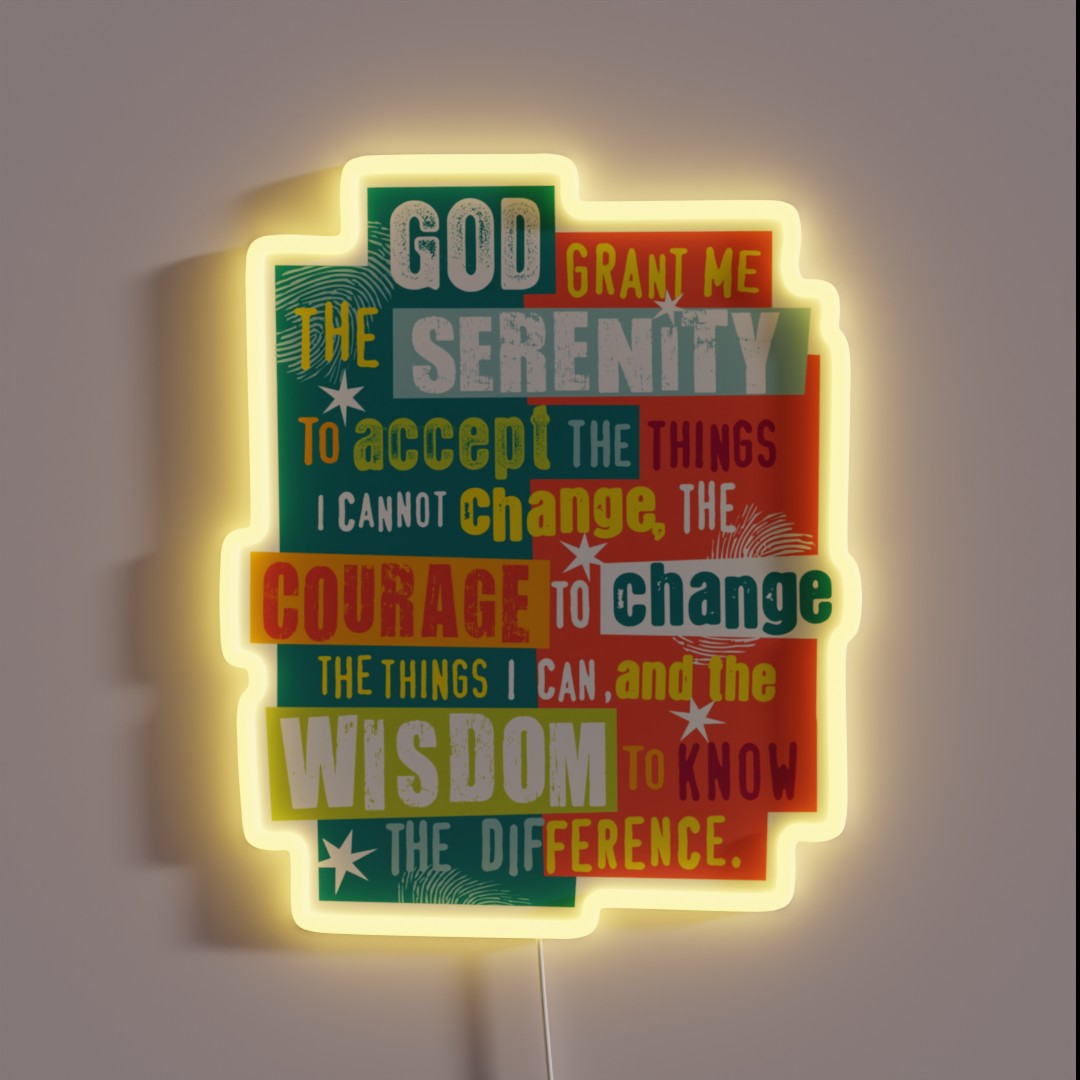 Find inner peace with the original graphic design of the Serenity Prayer, now beautifully illuminated in vibrant RGB neon lights.