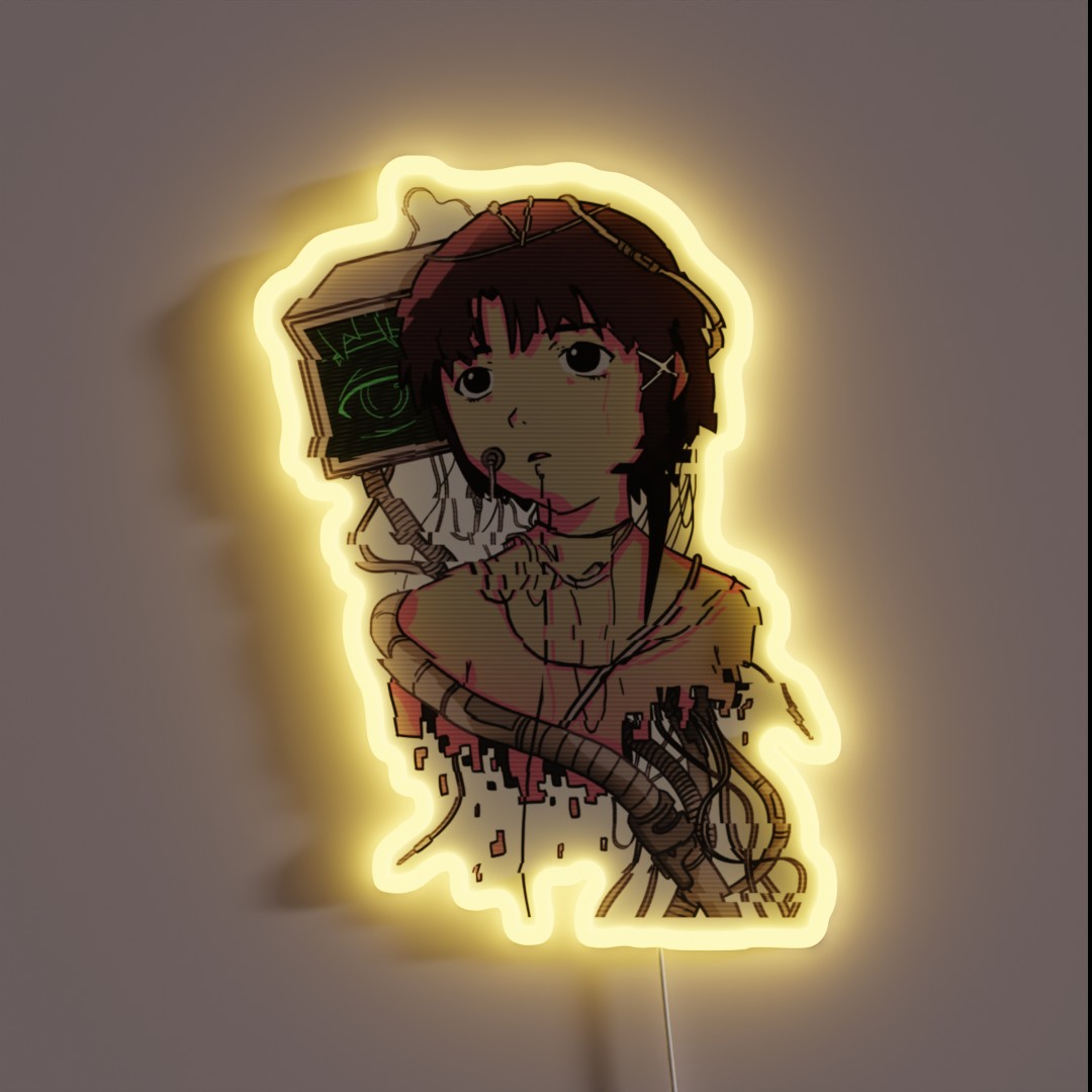 Add a surreal touch to any room with our Serial Experiments Lain RGB neon sign, featuring vibrant colors and a mesmerizing design that captures the essence of this cult classic anime series.