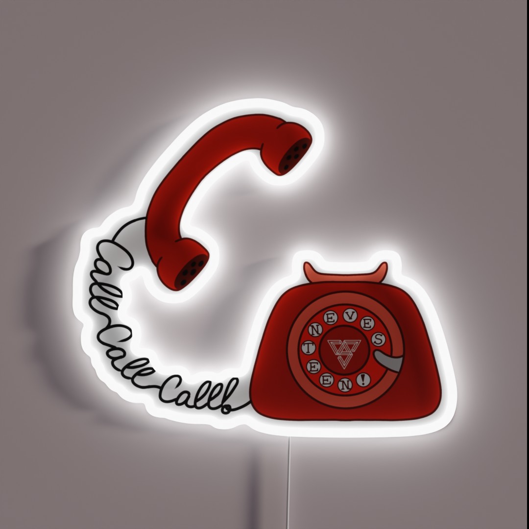 The Seventeen s CALL CALL CALL RGB neon sign is a vibrant and eye-catching decorative piece that adds a touch of modernity to any space. This unique sign features the bold and attention-grabbing text “CALL CALL CALL” in bright, colorful RGB LED lights.