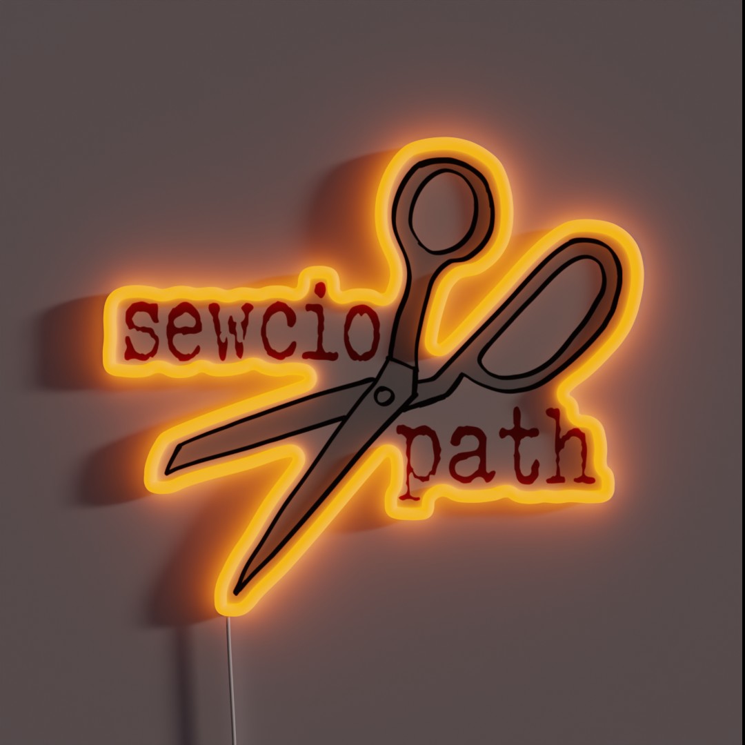 Add a touch of quirky style to your home decor with our unique Sewciopath with Scissors RGB neon sign, featuring a colorful and humorous design that’s sure to delight horror movie fans and DIY enthusiasts alike.