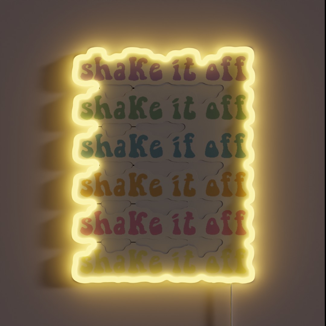 Unleash your inner hippie with this mesmerizing neon sign that’s sure to brighten up any room. With its bold and colorful design featuring the iconic phrase “Shake It Off”, this eye-catching light is the perfect addition to your home, dorm room, or office space.