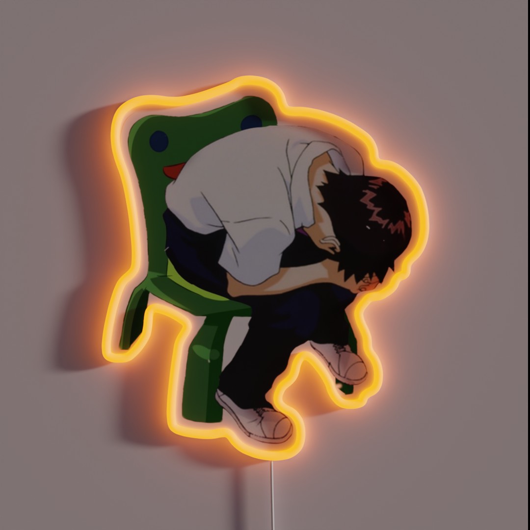 Bring a touch of quirky charm to your space with this one-of-a-kind neon sign featuring Shinji from the popular anime series sitting comfortably in a froggy chair. Crafted using cutting-edge LED technology, this sign is not only durable and non-fragile but also safe for use due to its low voltage operation (12V adapter included).
