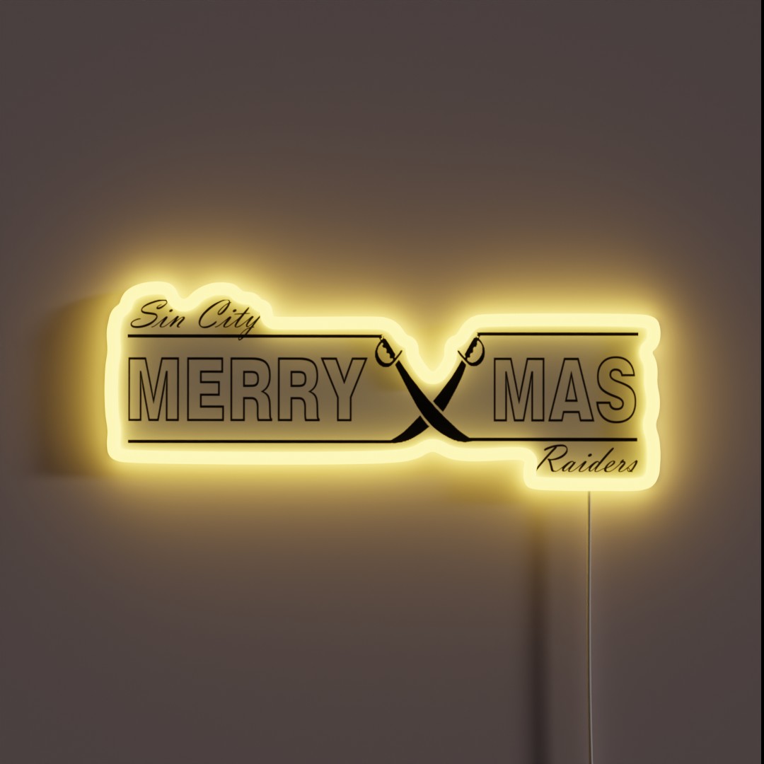 Brighten up your gaming space with the Sin City Raiders Holidays RGB neon sign, a vibrant and customizable decoration featuring iconic Las Vegas-inspired graphics in radiant LED lights.