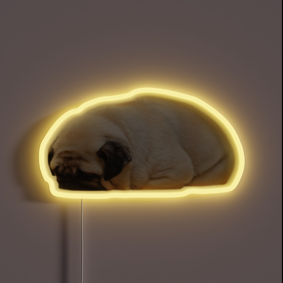 Add a touch of playful whimsy to your space with this unique Sleepy Pug RGB Neon Sign, featuring a charming illustration of a snoozing pug in vibrant, programmable colors.