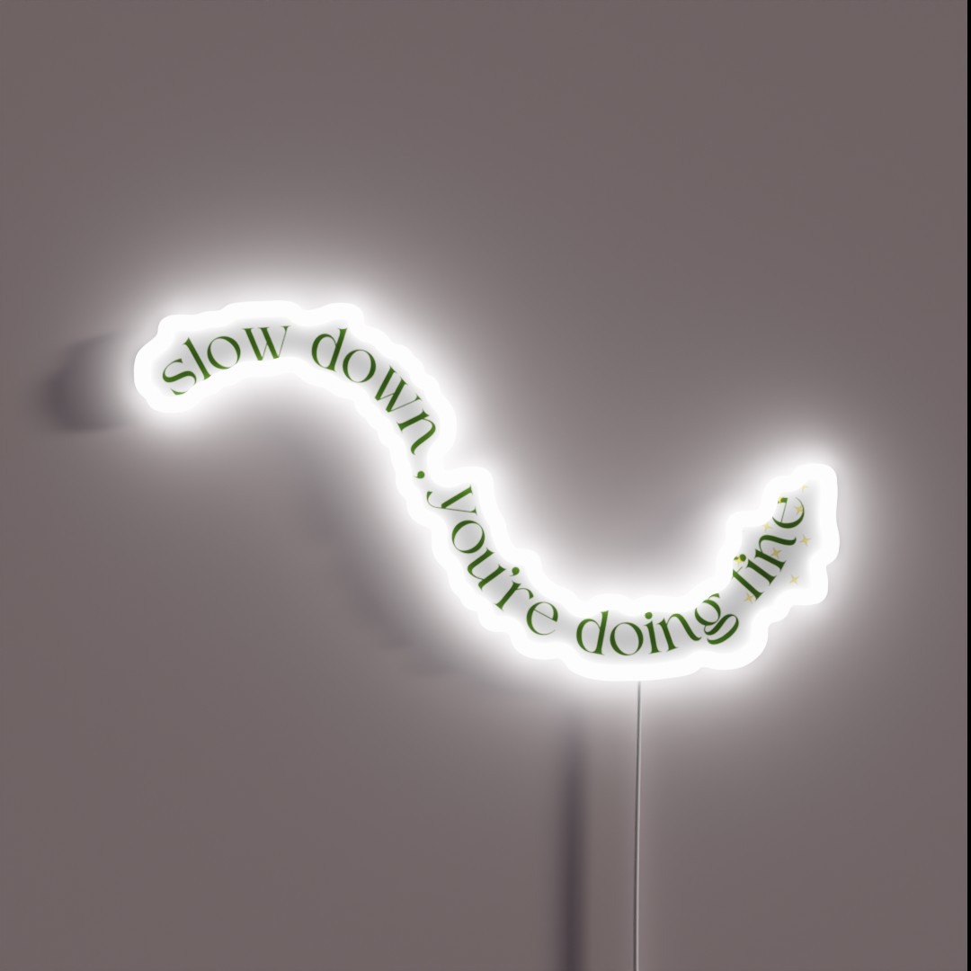 Breathe easy with our ‘Slow Down You’re Doing Fine’ RGB neon sign, a calming reminder to savor life’s moments and let go of stress.