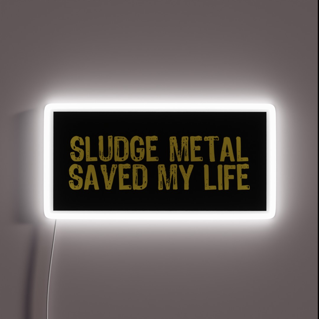 Elevate your space with the intense energy of the Sludge Metal Saved My Life RGB neon sign, perfect for music enthusiasts and fans of heavy metal culture.