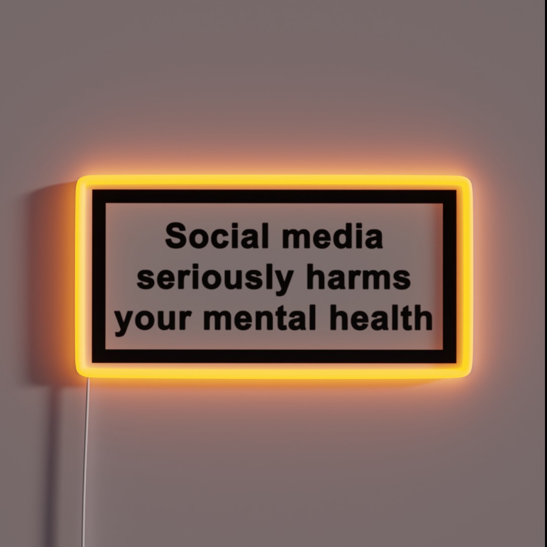Disconnect from social comparison and reconnect with self-wellness with this eye-catching ‘Social Media Seriously Harms Your Mental Health’ RGB neon sign.