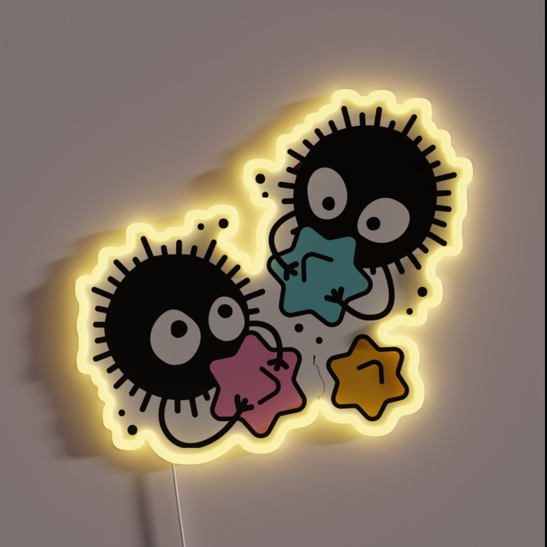A vibrant Studio Ghibli-inspired RGB neon sign featuring iconic imagery from Soot, perfect for anime fans and adding a pop of color to any room.