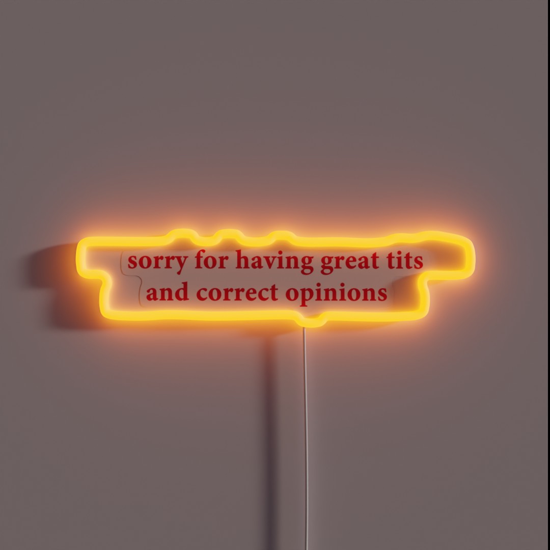 So why settle for boring decor when you can have a fun and sassy neon sign? Order our “Sorry For Having Great Tits And Correct Opinions” funny RGB neon sign today and get ready to LOL every time you see it!